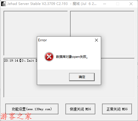 这个问题很常见,根据提示看就是数据库的问题。主要原因是因为关其他游戏时没有关闭数据库,造成数据库冲突,造成数据库启动不起来,或者根根就没有操作启动数据库这一步。