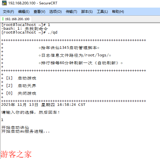 按提示,输入,1 启动游戏