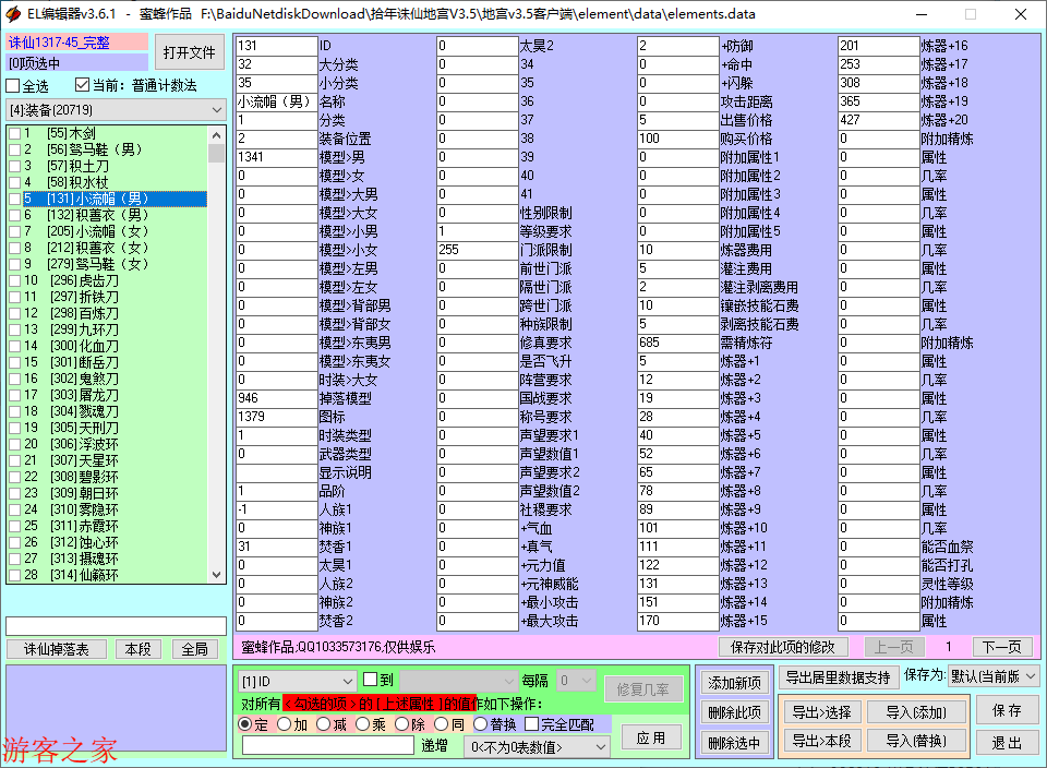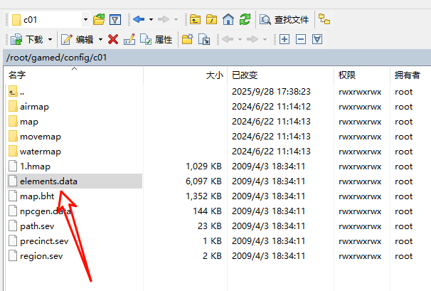 修改属性,修改完之后还需要把修改后的这个 elements.data 文件替换到服务器。