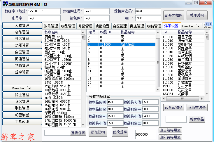 但是这个工具好像不能发送物品装备。那就用另外一款吧。但是下面这一款修改爆率又比较麻烦。所以打包两份GM工具。