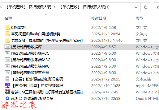 首先网游便单机,它用得有一个服务器,但这个单机版服务器就是你自己的电脑。客户端服务器都在你的电脑里。咱们先启动服务端相关的文件。