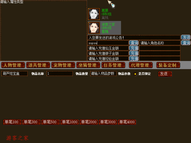 在里面自己注册账号,输入账号密码登录。这个启动非常简单。里面有GM工具。