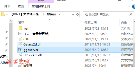 先启动服务端。进入服务端目录,双击打开 ggeserver 这个文件