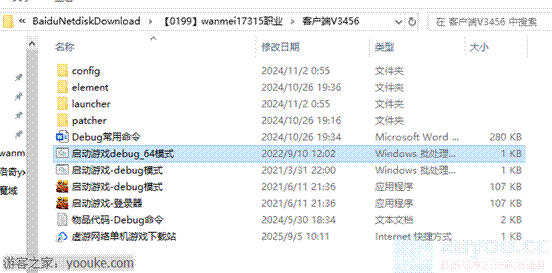 服务端已经启动完成了,可以关掉窗口。最小化也可以。进入客户端目录。打开”启动游戏debug_64模式“