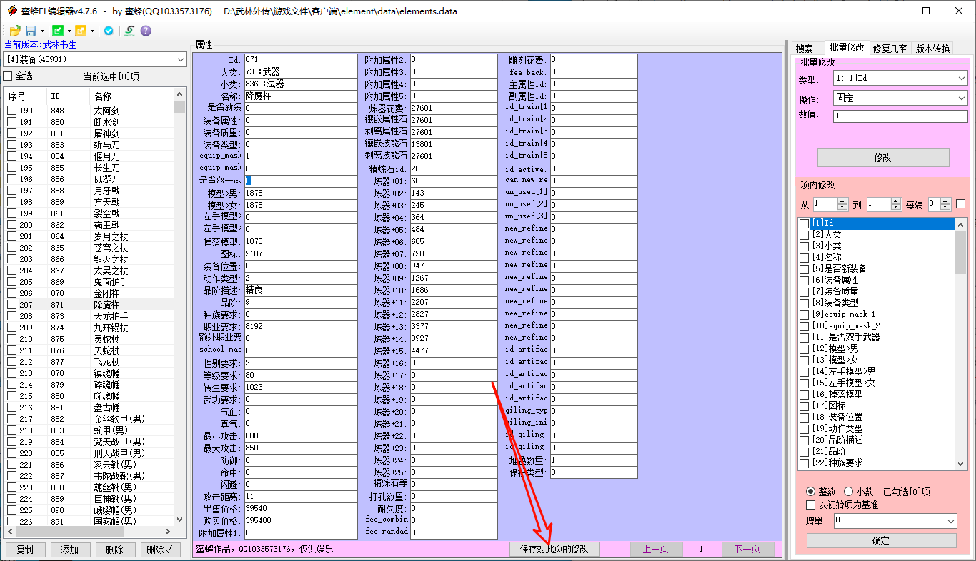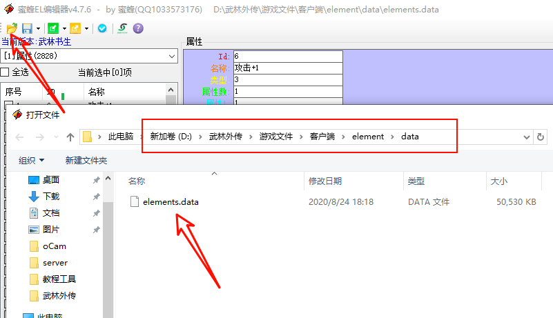 打开el编辑器,打开elements.data 这个文件,修改之前建议先备份一个