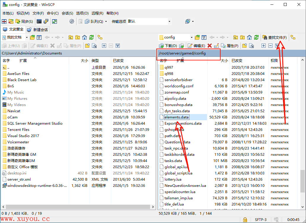 找到elements.data存放的目录,找不到的话就搜索,把它替换成修改后的这个文件。