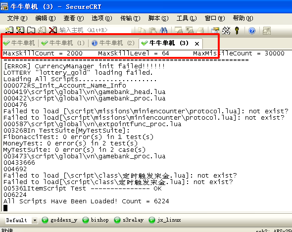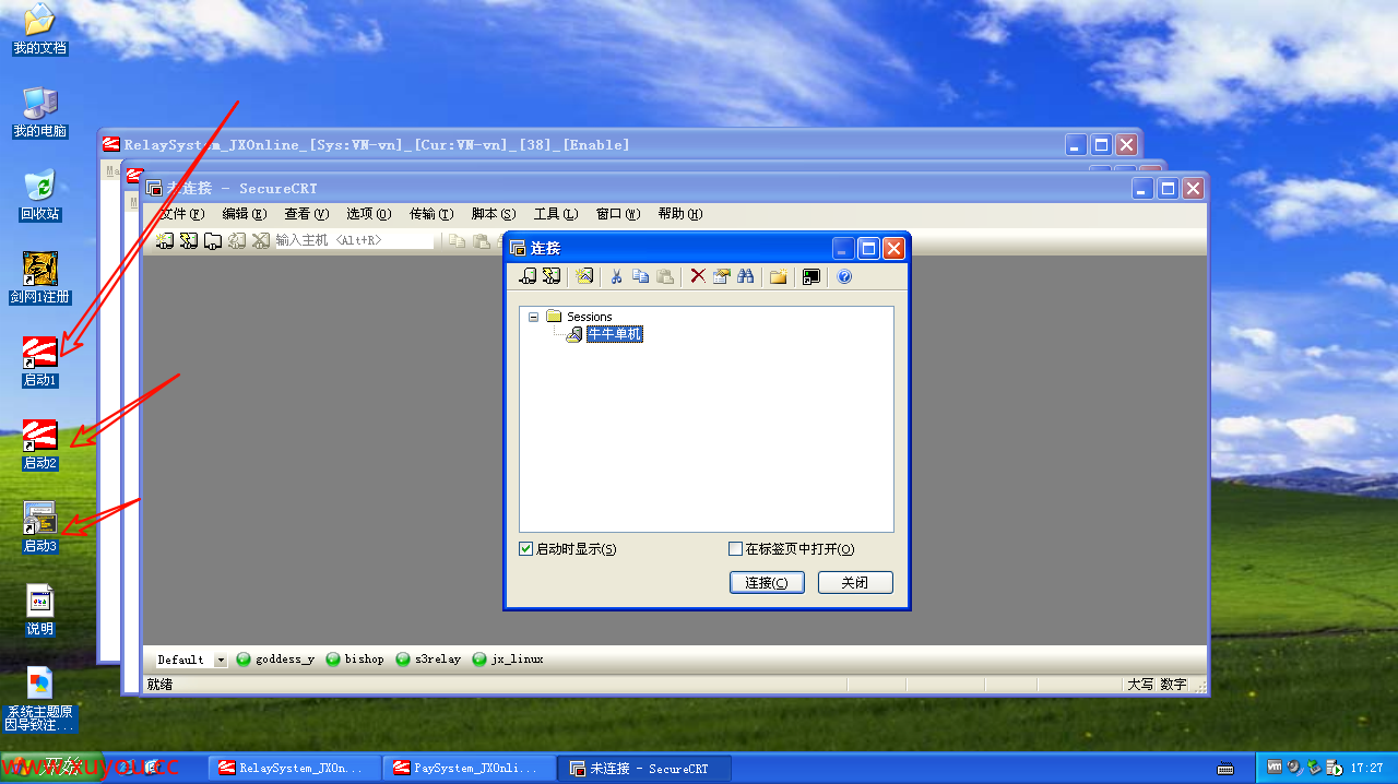 启动三就是securecrt打开的时候点链接,把这四个启动,每个会话启动一个。