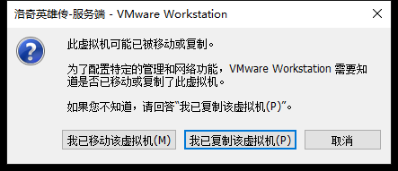 出现这个提示,选择“我已移动该虚拟机”