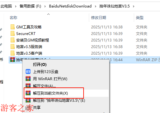 接下来使用链接软件启动游戏服务。先进入 SecureCRT 这个文件夹,打开 SecureCRT.exe